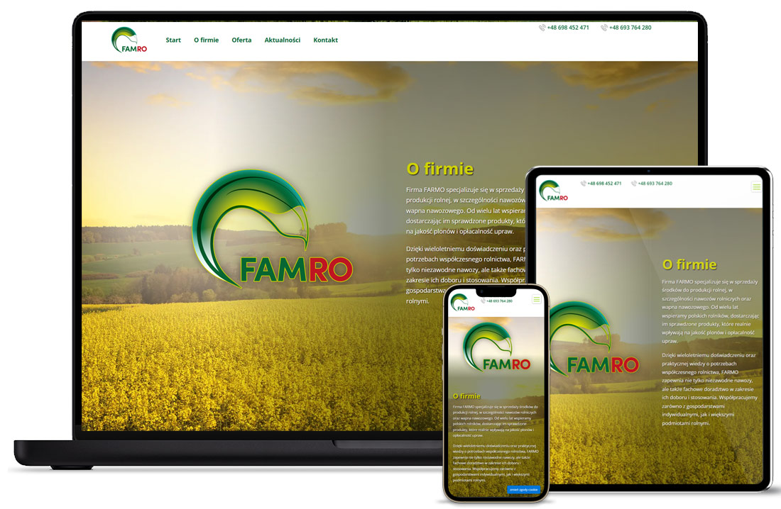 Wykonanie projektu graficznego, wdrożenie autorskiego systemu CMS do zarządzania treścią, optymalizacja SEO, pełna responsywność - dostosowanie strony WWW do urządzeń mobilnych (RWD).
